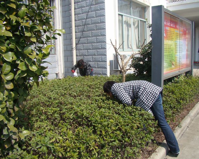因中心的房子緊靠公路邊,平時有很多的車輛在此???,公路旁邊沒設(shè)垃圾桶,很多駕駛員就隨手把垃圾扔到旁邊的綠化帶上,有的甚至扔到大院內(nèi)的綠化帶上。此次活動,我們以清理綠化帶上的白色垃圾為主要內(nèi)容,同時清除中心院內(nèi)的各個衛(wèi)生死角?;顒又?,大家干勁十足,發(fā)揚不怕臟、不怕累的精神,垃圾在哪里,人就在哪里,樹叢里,水溝邊,圍墻角,都有同志們的身影。經(jīng)過大家的共同努力,各個衛(wèi)生死角都清理干凈,中心大院內(nèi)外煥然一新,為鞏固活動成果,中心還在馬路旁設(shè)立了便民垃圾桶,顯眼的地方粘貼了“請勿亂垃圾”的告示。